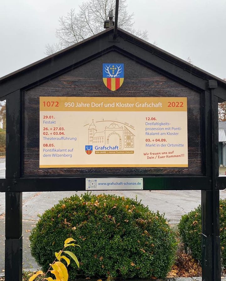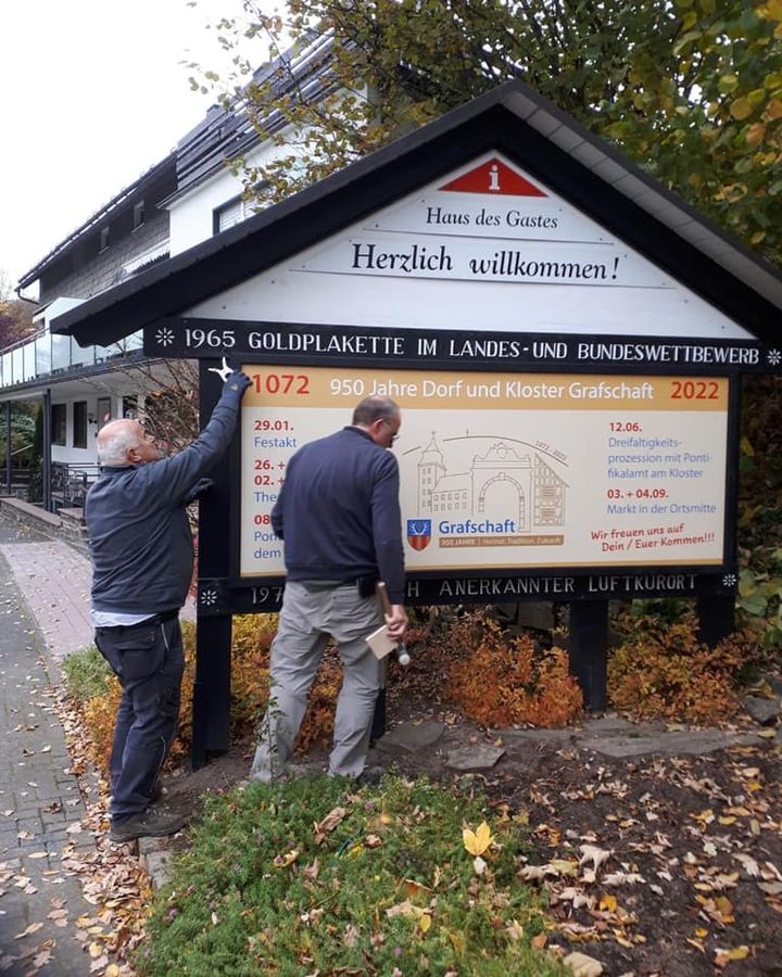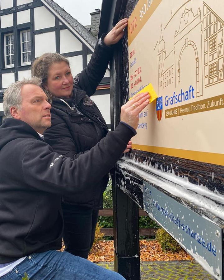 Heute wurden die Hinweistafeln im Dorf für #grafschaft950 montiert.