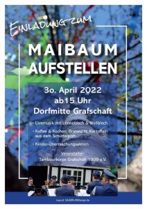 Weiter geht’s im Jubiläumsjahr – Am Samstag, den 30.04.22, wird im Dorf der Maibaum aufgestellt.Kommt gerne vorbei und feiert mit 😊 #grafschaft950