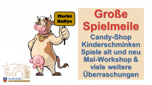 Die Kuh Lina ist das Maskottchen unserer Markt-Ralley. Die Kinder können an einem Gewinnspiel teilnehmen, wenn sie Fragen beantworten, Rätsel lösen und Aufgaben erfüllen. Generell gibt es ein großes Angebot für Kinder in der Ortsmitte. Die Pfarrjugend Pusteblume hat sich einiges einfallen lassen und auf Kösters Hof eine „Spielmeile“ geplant. Hier können Kinder kreativ sein, sich schminken lassen, alte und neue Spiele ausprobieren und sich mit Süßigkeiten eindecken.